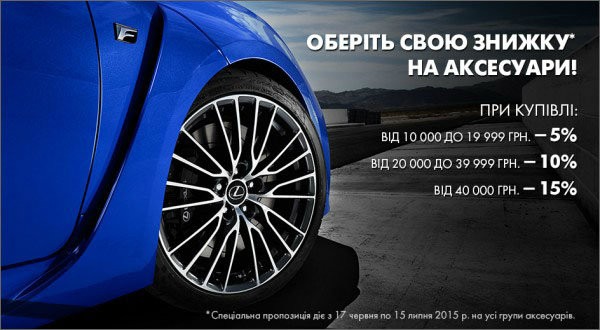 З 17 червня по 15 липня 2015 року Тойота Сіті Плаза надихає своїх клієнтів спеціальними цінами на всі групи аксесуарів.