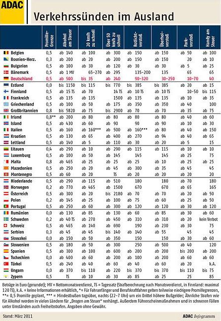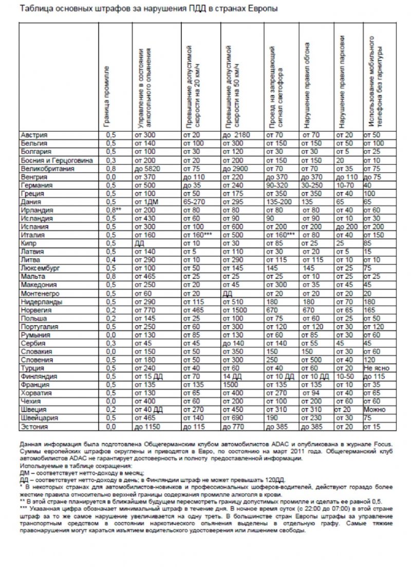 Таким "перелётным" водителям может пригодиться сводная таблица европейских штрафов за нарушения ПДД, подготовленная Общегерманским клубом автомобилистов ADAC.