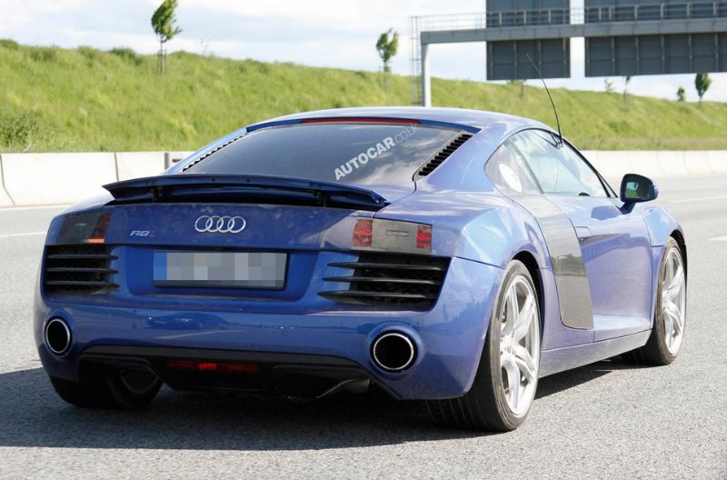Судя по всему, фейслифтинговый Audi R8 получил увеличенные воздухозаборники в дверях, что означает, что под капотом автомобиля находится прежний 10-цилиндровый двигатель, форсированный до 540 л.с. Мотор будет агрегатироваться с семиступенчатым двухдисковым «автоматом» и шестискоростной «механикой».