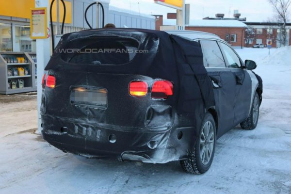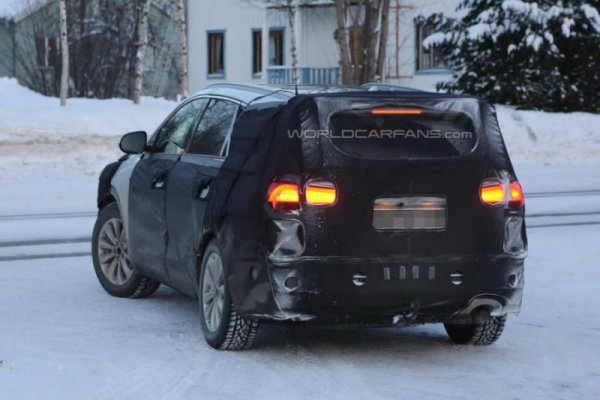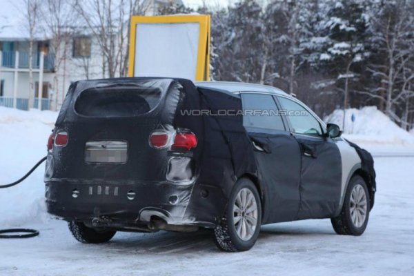 На первых "шпионских" снимках Kia Sorento под "камуфляжем" частично видны новая головная оптика, модифицированный бампер с крупными противотуманками, корпуса наружных зеркал с дублерами поворотников и внушительных размеров задние светодиодные фонари.