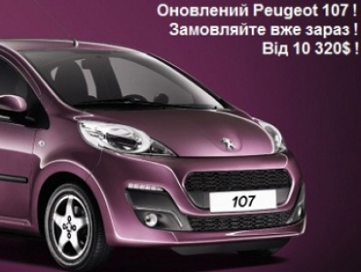 Официальный дилерский центр Peugeot «ВиДи Авеню» открывает прием заказов на обновленный Peugeot 107! Рестайлинговый автомобиль доступен в двух комплектациях: ACCESS и ACTIVE. Цена — от 10 320$. Совсем скоро все желающие смогут полюбоваться новинкой и в салоне — здесь авто появится уже в конце марта.