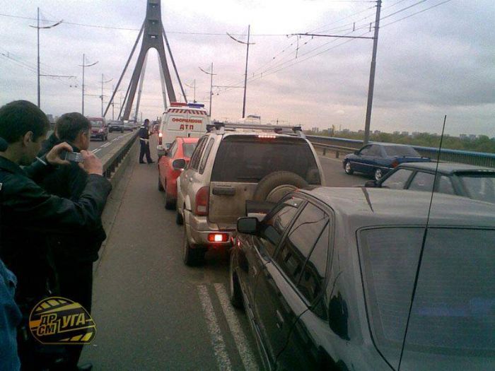 Автомобили двигались в левой полосе в направлении Левого берега. В какой то момент перед японской легковушкой по неизвестной причине резко затормозил Mitsubishi черного цвета. Все, кроме водителя баварского авто, замыкавшего цепочку, среагировали на резкое изменение дорожной ситуации. В результате, BMW врезался в заднюю часть Suzuki, а тот по инерции догнал Mazda.