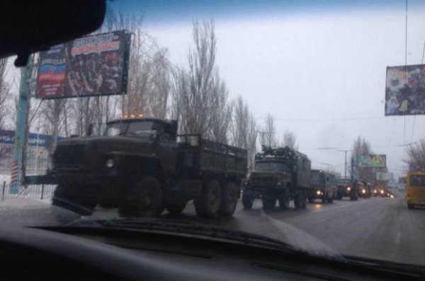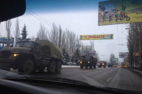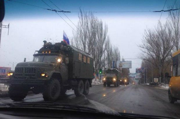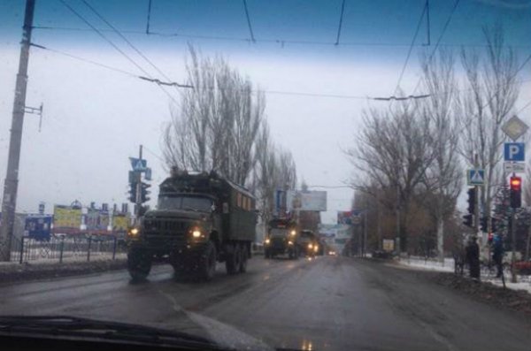 Колонна из 50 единиц военной техники с российским флагом проехала через Макеевку Донецкой области утром в понедельник, 8 декабря, сообщает .