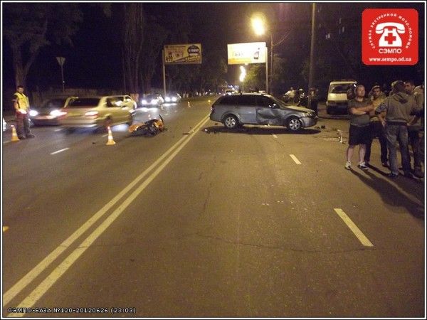 Одесса: автомобиль переехал мотоциклиста. С тяжелыми травмами парня доставили в реанимацию. (Фото)