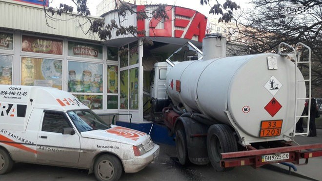 Одесса: бензовоз смел пять машин и протаранил магазин. (Фото)