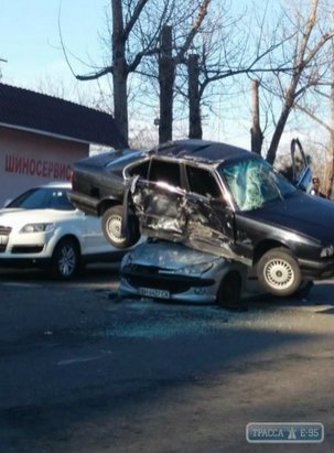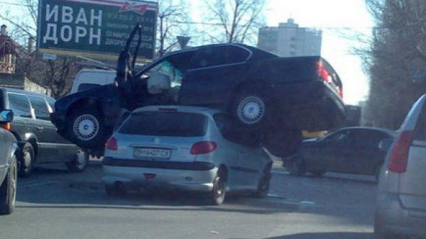 В Одессе вчера, утром, произошло нестандартное ДТП: автомобиль марки BMW столкнулся с иномаркой Daewoo и в результате оказался на крыше у Peugeot, сообщает .