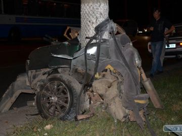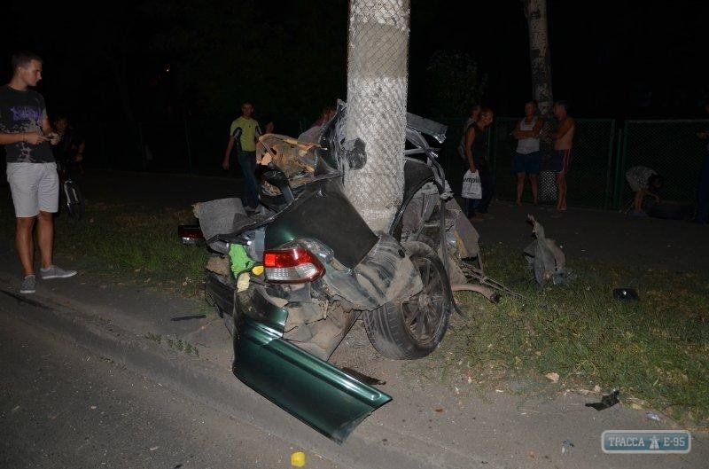Автомобиль Nissan Maxima поздно вечером в четверг, 9 августа на большой скорости в заносе врезался в столб на ул. Сортировочной в Одессе. Удар был такой силы, что иномарку в буквальном смысле этого слова разорвало на несколько частей - передняя часть корпуса машины отлетела примерно на 150 метров, сообщает .