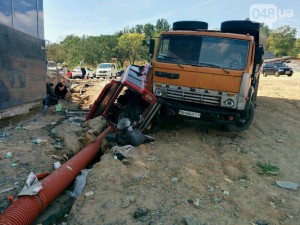 На строительной площадке автомобиль КамАЗ начал произвольное движение по склону и врезался в припаркованный автомобиль ВАЗ-2104.