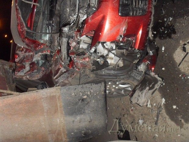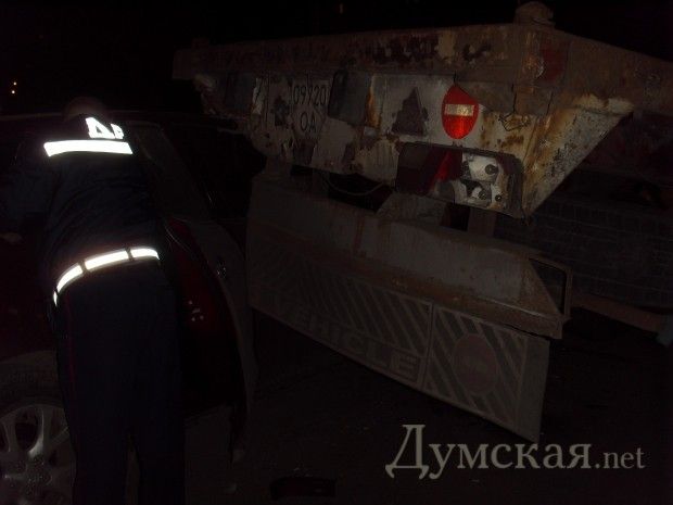 Поздно вечером около 23:00 на улице Заболотоного между Днепропетровской дорогой и улицей Сахарова автомобиль Mazda столкнулся со стоящим на обочине прицепом от «Камаза». За рулем иномарки была нетрезвая одесситка, рядом — такой же нетрезвый пассажир, сообщает .