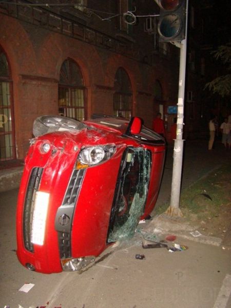 После столкновения Nissan вылетел на тротуар, влетел в опору светофора лобовым стеклом, и перевернулся набок. Оба водителя отделались лёгкими травмами.