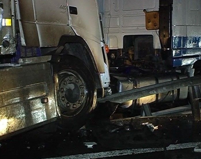 В этот момент в авто с разгону угодил ехавший позади грузовик "Вольво" с полуприцепом.
