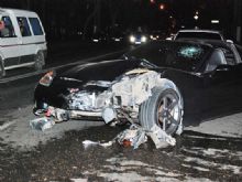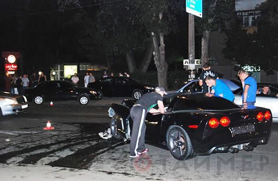 В результате столкновения Mitsubishi Lancer отбросило на припаркованный на тротуаре автомобиль, а Chevrolet Corvette развернуло на 180 градусов.