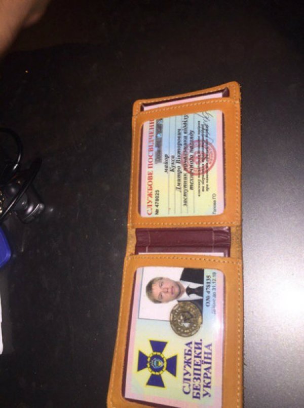 В салоне авто очевидцы обнаружили пакет документов, среди которых была "корочка", похожая на удостоверение сотрудника СБУ. Документ якобы выдан на имя майора Куксы Дмитрия Викторовича.