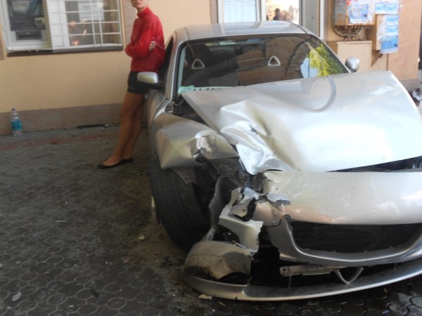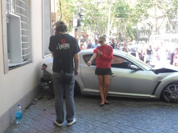 По словам очевидцев, спортивный автомобиль Mazda RX8, на большой скорости совершал поворот и, не справившись с управлением, врезался в автомобиль марки ВАЗ 2107. От столкновения иномарку откинуло на тротуар, где она налетела на проходившую мимо девушку, прижав ее к стене.