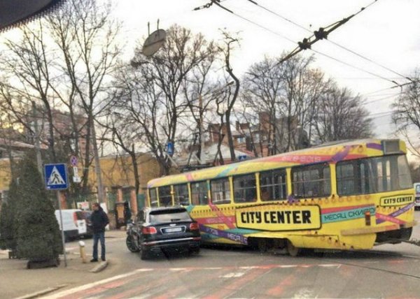 В Одессе на днях произошло весьма интересное ДТП. Новый внедорожник Bentley Bentayga столкнулся с трамваем.