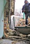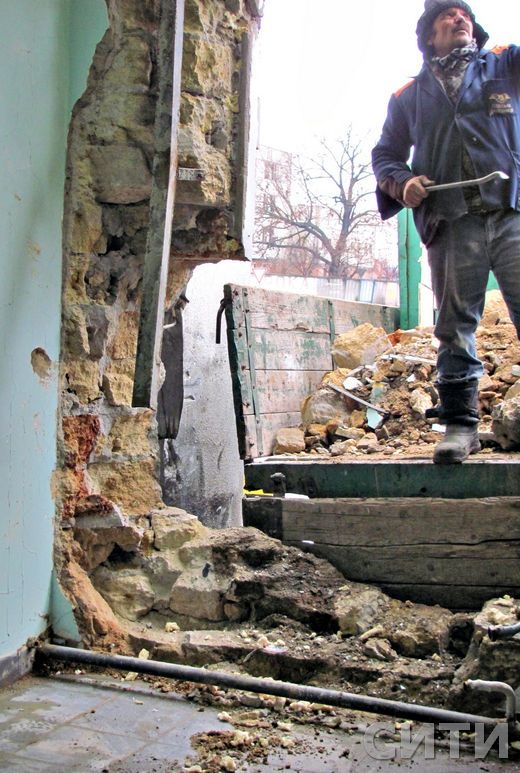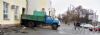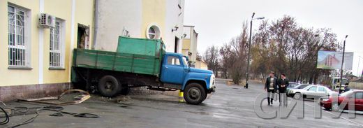 Вся привокзальная площадь - в бензиновых разводах. В стене вокзала - дыра, которую заделывают строители. Сам проем, разрушенный автомобилем, закрыт грузовиком.