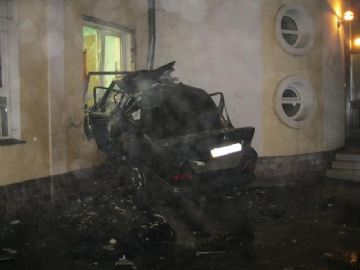 Автомобиль сотрудникам МЧС, приехавшим по вызову, пришлось тросами вытягивать из здания, а затем гидравлическими ножницами разрезать искореженный кузов, вызволяя тела погибших.
