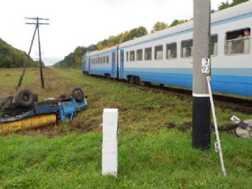 ДТП произошло на ж/д переезде между станциями "Оратов - Липовец". Там столкнулись пригородный дизель-поезд сообщением «Христиновка-Козятин» и грузовой автомобиль-молоковоз под управлением 21-летнего жителя Винницкой области, сообщает .
