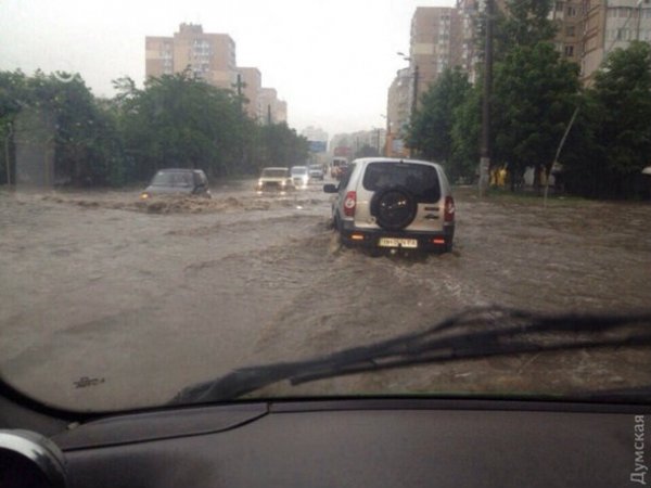 Проливные дожди доставили серьезные проблемы жителям Одессы и области. Потоки воды затапливают не только улицы Южной Пальмиры, но даже трассу Одессу-Рени.