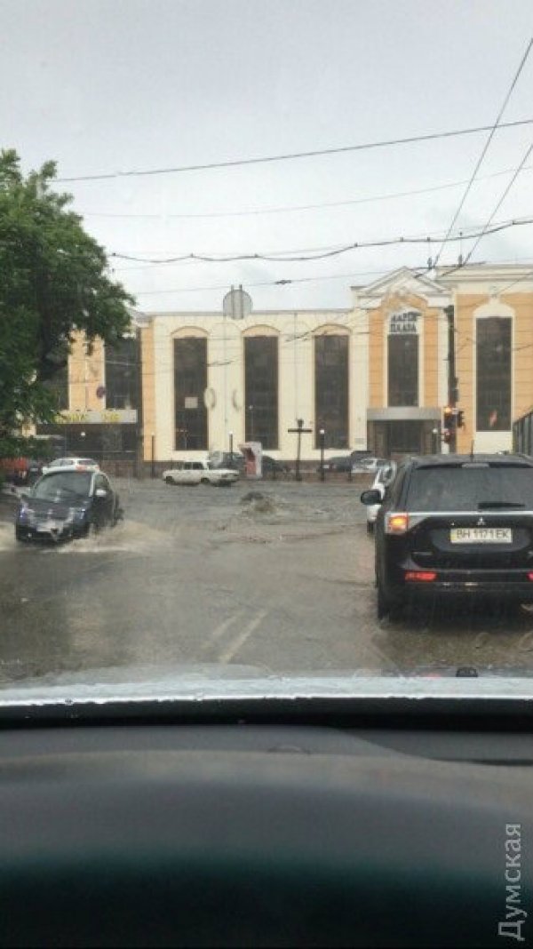 Некоторые улицы Одессы оказались затопленными из-за дождя, идущего уже несколько часов в пятницу, 3 июня. Автомобилям пришлось "плыть" по улицам, сообщает .