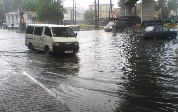В связи с непогодой одесские трамваи изменили свой маршрут, а автомобилям приходится преодолевать воду буквально вплавь.