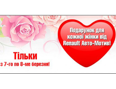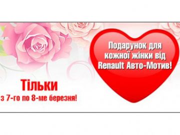 С 07 марта по 08 марта в официальном дилерском центре Renault по адресу г. Киев, ул. Николая Гринченко, 18 День Открытых Дверей в честь Международного Женского праздника 8-е марта.