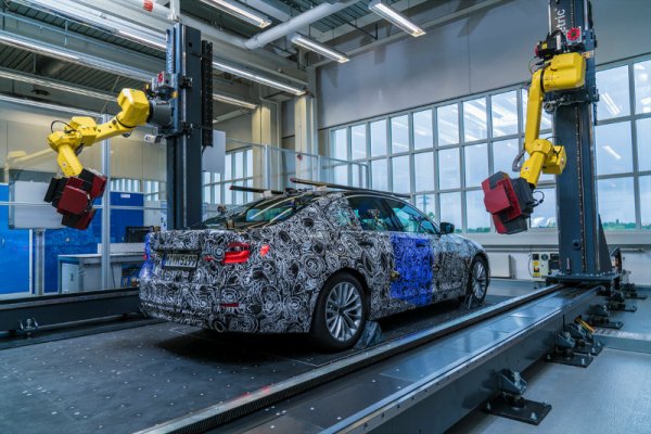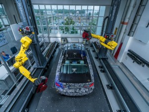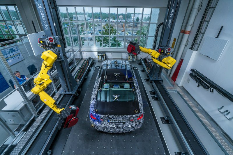 На изображениях представлен прототип серийной версии модели. Фотографии демонстрируют процесс генерации 3D-изображения автомобиля с помощью специальных манипуляторов. Устройство собирает сверхточные данные, которые помогают обнаружить недостатки уже на начальном этапе производства.