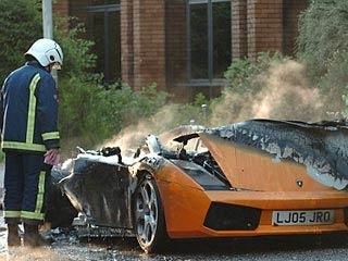Прибывшие на место происшествия пожарные тушили огонь 20 минут. Кузов Gallardo сделан из легковоспламеняющегося карбона, плюс к этому - попеременно взрывались то шины, то газовые амортизаторы. Спасти горящий спорткар не удалось.