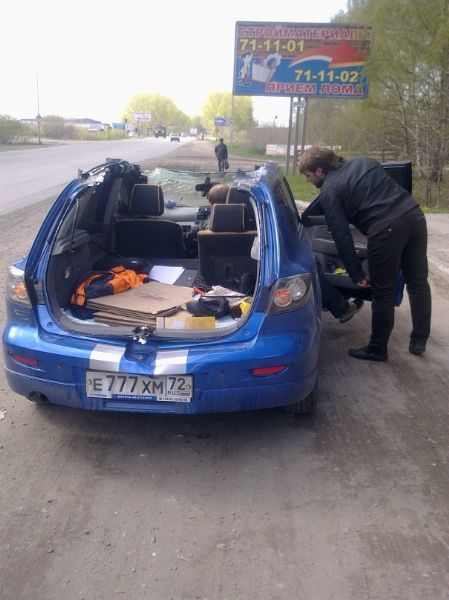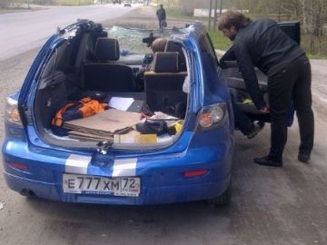 ДТП произошло неподалеку г.Тюмень (Россия). Водитель Mazda Axella (Mazda 3) не разминулся с негабаритным грузом - швеллером. В результате ДТП в Axella просто содрало крышу, сообщает .