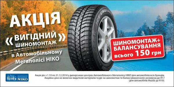 Осенняя цена на шиномонтаж в «Автомобильном Мегаполисе НИКО» - 150 грн.