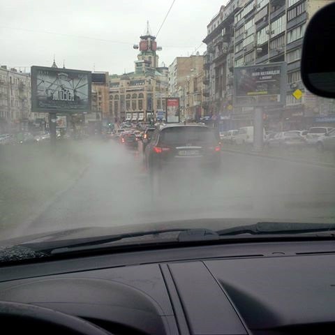 В Киеве на Бессарабке прорвало трубу, в результате чего горячая вода залила улицу, включая проезжую часть.