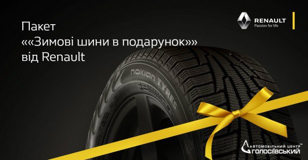 З 1 жовтня по 31 грудня 2018 року в офіційній дилерській мережі Renault стартує сезон актуальних подарунків: при покупці нового Renault Duster, Logan, Logan MCV, Sandero, Sandero Stepway (по одній з програм Renault Фінанс) власник отримує безкоштовно комплект якісних зимових шин1.