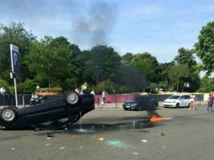 В ходе забастовки таксисты построили баррикады, жгут шины, бьют битам стекла машин.
