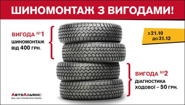 Официальный дилер Nissan в Киеве и Киевской области «АвтоАльянс Киев» подготовил специальное предложение по шиномонтажу..