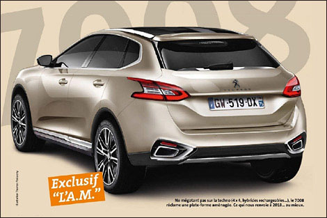 Вседорожник 7008 будет построен на модульной платформе концерна PSA Peugeot Citroen, которая называется EMP2. Ее использовали при создании различных моделей от седана Peugeot 408 до компактвэна Citroen C4 Grand Picasso. По сравнению с последним колесная база будущего кроссовера будет увеличена на 10 миллиметров – до 2840 миллиметров.