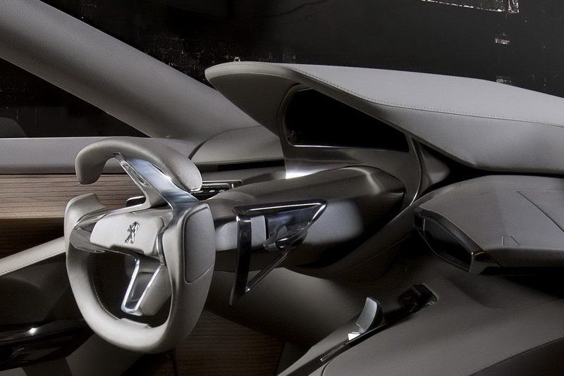О дизайне концепта можно судить по фотографиям, но стоить отметить, что фантазии французам не занимать. По данным компании, концепт демонстрирует последние тренды стиля машин от Peugeot. Интерьер, в свою очередь, иллюстрирует слоган марки "Motion & Emotion", а также видение компании, как должен выглядеть салон премиального автомобиля. За часть "Emotion" отвечает высокотехнологичная приборная панель и органы управления всеми системами машины, которые дают водителю чувство максимального контроля. За "Motion" - специально разработанный задний диван, отвечающий за комфорт и удобство пассажиров. В центральной консоли есть минибар и кофе-машина. Осталось поместить куда-нибудь мини-печку для круассанов. Кстати, в угоду экологам большинство материалов для оформления интерьера – легко перерабатываемы.