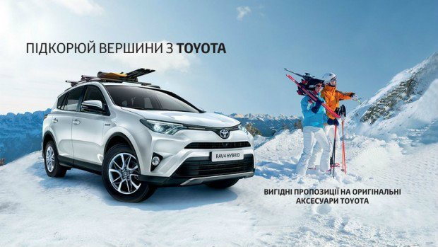 Чудова природа, свіже повітря подарують Вам яскраві позитивні емоції та враження від відпочинку. Оригінальні аксесуари серед яких навігаційні системи Toyota Touch 2, багажні бокси, рейлінги та поперечини даху, кріплення для перевезення лиж і сноубордів до поможуть Вам насолоджуватись зимовим відпочинком з максимальним комфортом.