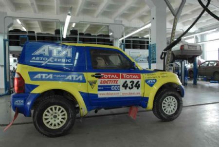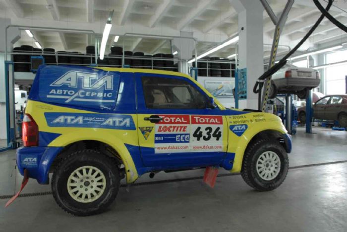 Журналисты смогли увидеть автомобиль Mitsubishi Pajero, который покорял Дакар, так как незадолго до пресс-брифинга, машина наконец вернулась в Украину.