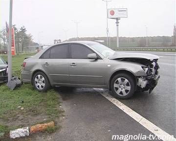 Автомобиль Hyundai врезался в машину инспекторов ГАИ, которые оформляли здесь ДТП.Необычное ДТП произошло на 26-м километре трассы Киев-Харьков, сообщает .