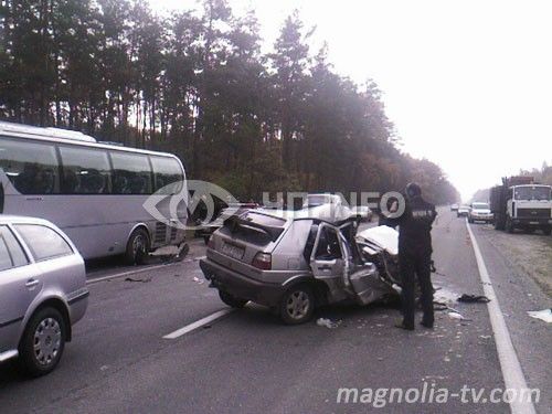 Под Киевом в двух километрах от Броваров столкнулись автобус и автомобиль Volkswagen, сообщает .