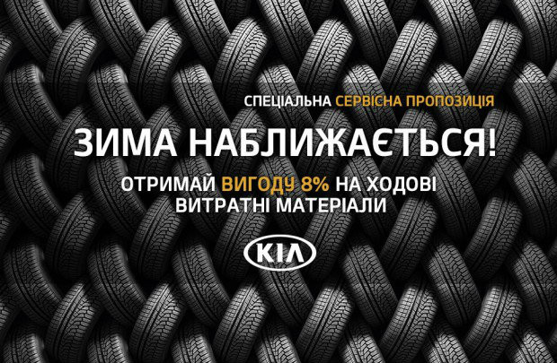 Официальный и эксклюзивный дистрибьютор KIA в Украине, компания «Фалькон-АВТО» приглашает владельцев автомобилей корейского бренда посетить ближайший официальный сервис KIA и подготовить его к зимней эксплуатации с выгодой * на отдельные позиции запчастей и расходных материалов, достигает 8%. Предложение действует в период с 23.09.19 по 22.11.19.