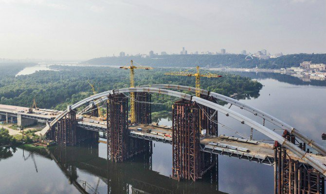 В частности, речь идет о строительстве левоповоротного съезда с моста и укреплении временных опор МО-1, МО-2, МО-3, МО-4 участка над Днепром. Строительные работы необходимо завершить за год – до 20 июля 2018 года.