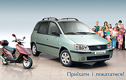 «Хюндай Моторс Украина» - официальный дистрибьютор автомобилей ТМ Hyundai в Украине, продолжает традицию приятных подарков* для своих клиентов и предлагает покупателям автомобиля Hyundai Matrix с 8 октября 2007 года по 8 ноября 2007 года мотороллер всего за 1 гривну!.
