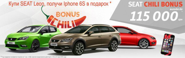 В честь дня основания компании «Авто-Киев» – официального дилера SEAT в Украине, все клиенты автосалона SEAT на Нивках (пр-т. Победы, 67) в мае получают в подарок* Iphone 6S при покупке автомобиля SEAT Leon..