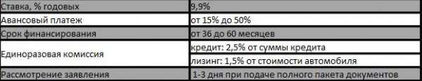 Условия финансирования: