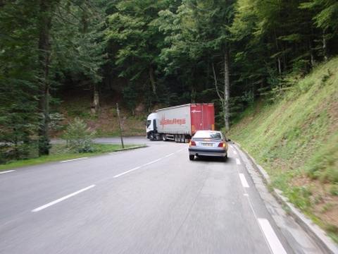 Едем за длинным рефрижератором, впереди спуск, и чтобы не сорваться со своими 70 тоннами груза вниз, он постоянно вынужден притормаживать, балансируя между 30 и 40 км/час. Мы волочимся за ним, ибо на спусках и подъемах обгон запрещен. Дальше подъем. Он со своим тоннажем еле его одолевает снова же на 30-40 км/час. От чрезмерного газования за фурой тянется жуткое облако выхлопных газов.