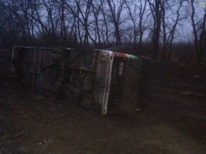15 декабря около 05:00 на 324км автодороги "Киев - Харьков - Довжанский", по предварительным данным, водитель автобуса Neoplan N216SH, 54-летний житель г. Краснодон Луганской области, двигаясь в направлении г. Харьков, вблизи села Абазовка, не справился с управлением, съехал в правый кювет и допустил падение автобуса на правый бок.