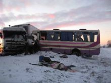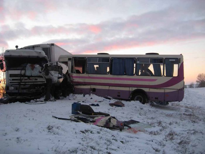 Вследствие ДТП водитель автомобиля "DAF" погиб на месте происшествия, а водитель автобуса и девятнадцать пассажиров получили телесные повреждения разной степени тяжести, с которыми были доставлены в больницу.
