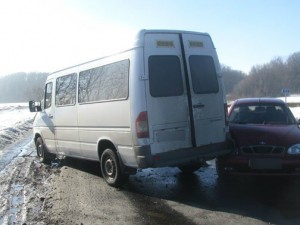 В это время "скорая", которая направлялась со стороны Полтавы, наехал на водителя и пассажира Geely. В то же время водитель автомобиля Daewoo Lanos протаранил Mercedes Sprinter, который после аварии находился на проезжей части.