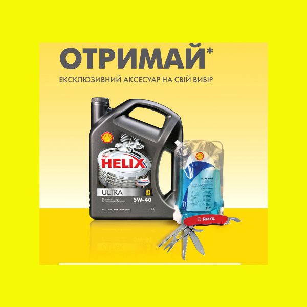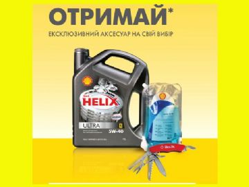 Компания «Шелл Ойл Продактс Юкрейн» объявляет о начале акции: при покупке четырехлитровой канистры высококачественного, полностью синтетического моторного масла Shell Helix Ultra каждый покупатель может выбрать эксклюзивный аксессуар от Shell Helix: мультифункциональный нож или зимний омыватель для стекла.
